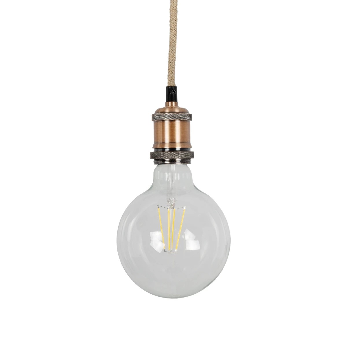 GLOBOSTAR® WHIP 77662 Μοντέρνο DIY Φωτιστικό με Υφασμάτινο Καλώδιο, Ντουί 1 x E27, Διακόπτη On/Off & Πρίζα AC 220-240V IP20 – Μπεζ & Χάλκινο – Μ150 x Π4 x Υ4cm