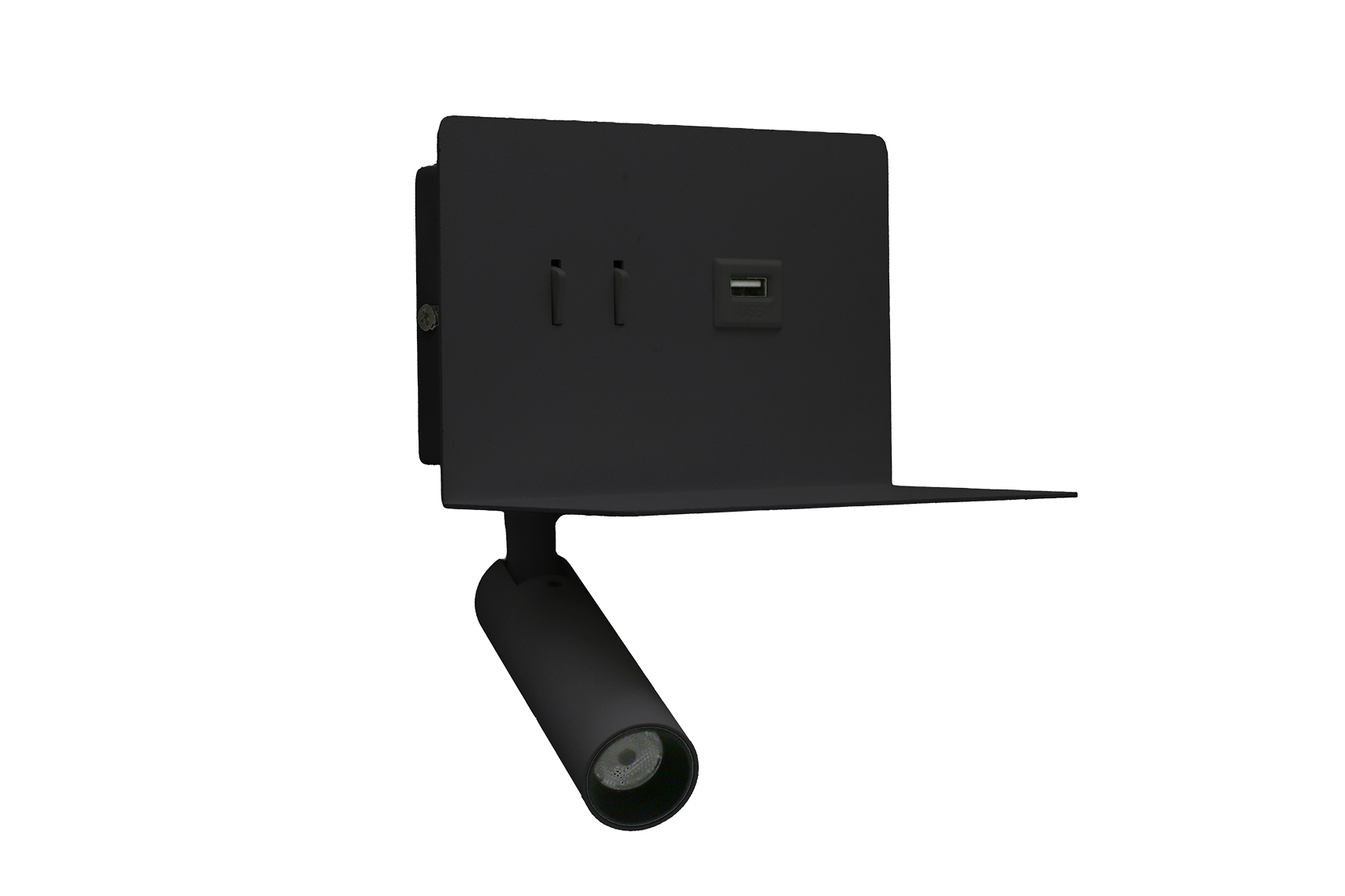 LED ΑΠΛΙΚΑ & ΣΠΟΤ ΤΟΙΧΟΥ ΟΡΘΟΓΩΝΙΑ 6W ΜΑΥΡΗ ΜΕ ΘΥΡΑ USB