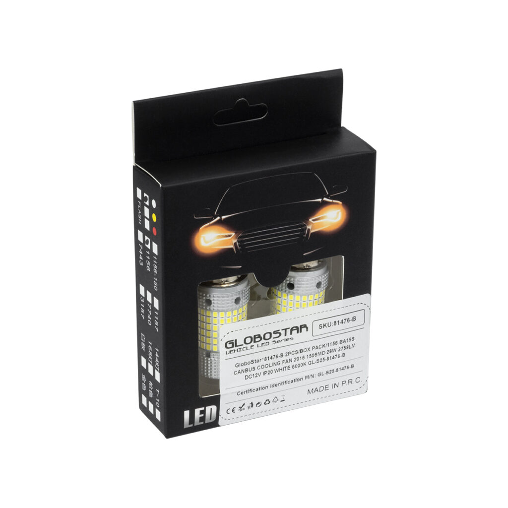GloboStar® 1156 – BA15S – P21W 81476-B Λάμπες Αυτοκινήτου LED 3rd Generation Can-Bus Extreme Series 150xSMD2016 28W 3360lm 360° DC 12-16V IP20 Φ2.1 x Υ5.5cm Ψυχρό Λευκό 6000K – Σετ 2 Τεμαχίων σε Box