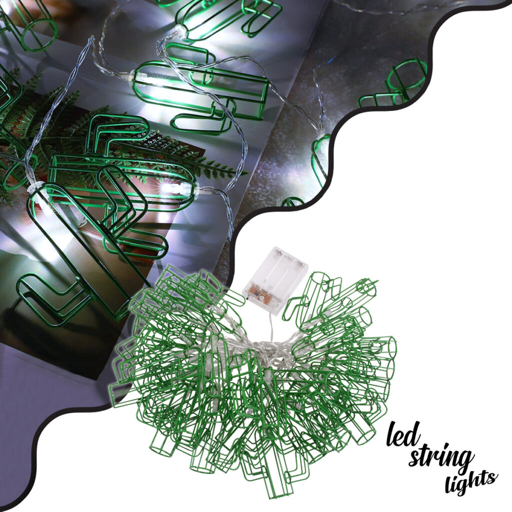 79802 Διακοσμητική Γιρλάντα Green Cactus 6 Μέτρα με Διακόπτη On/Off – 40 LED 4W με Μπαταρίες 3xAA & Διάφανο Καλώδιο IP20 Ψυχρό Λευκό 6000K Μ6m