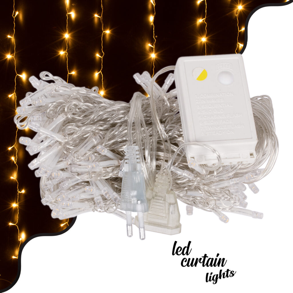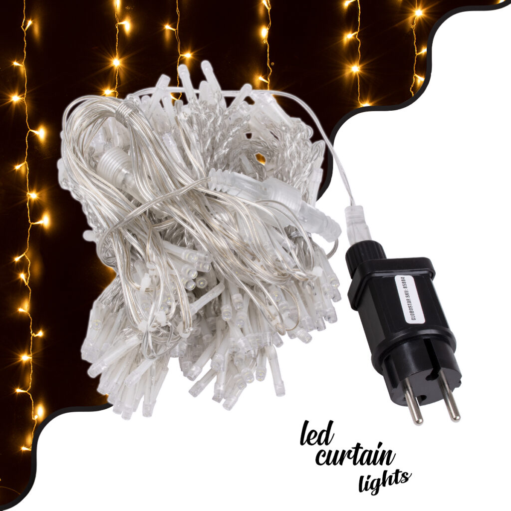 85803 Διακοσμητική Κουρτίνα 3 x 3 Μέτρα με Controller 8 Προγραμμάτων Φωτισμού – Επεκτεινόμενη 300 LED 8W AC 230V με Διάφανο Καλώδιο & Πρίζα Schuko Αδιάβροχη IP67 Θερμό Λευκό 3000K Μ3 x Υ3m