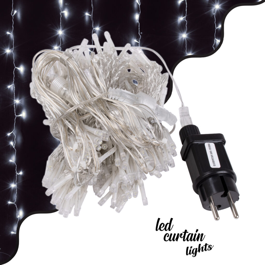 85801 Διακοσμητική Κουρτίνα 3 x 2 Μέτρα με Controller 8 Προγραμμάτων Φωτισμού – Επεκτεινόμενη 240 LED 6W AC 230V με Διάφανο Καλώδιο & Πρίζα Schuko IP20 Ψυχρό Λευκό 6000K Μ3 x Υ2m