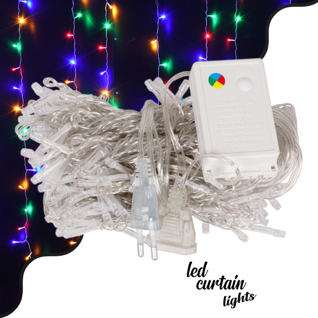 85802 Διακοσμητική Κουρτίνα 3 x 2 Μέτρα με Controller 8 Προγραμμάτων Φωτισμού – Επεκτεινόμενη 240 LED 6W AC 230V με Διάφανο Καλώδιο & EU Πρίζα IP20 Πολύχρωμο RGB Μ3 x Υ2m