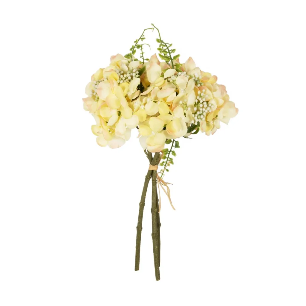 GloboStar® Artificial Garden YELLOW HYDRANGEA BOUQUET 21315 Τεχνητό Διακοσμητικό Μπουκέτο Κίτρινη Ορτανσία Y33cm