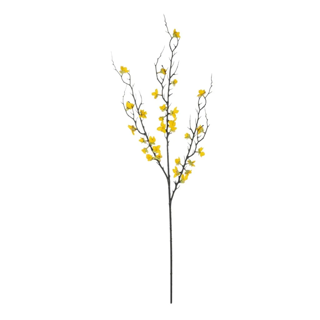 GloboStar® Artificial Garden YELLOW JUNGLE GERANIUM BLOSSOM BRANCH 21460 Τεχνητό Διακοσμητικό Κλαδί Κίτρινο Γεράνι Y95cm