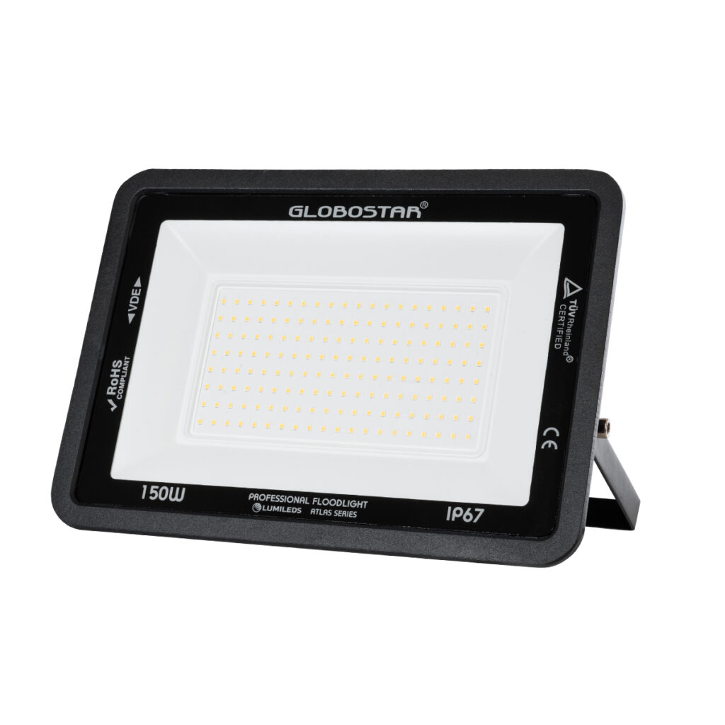 GloboStar® ATLAS 61430 Επαγγελματικός Προβολέας LED 150W 17250lm 120° AC 220-240V – Αδιάβροχος IP67 – Μ32 x Π4 x Υ23cm – Μαύρο – Θερμό Λευκό 2700K – LUMILEDS Chips – TÜV Rheinland Certified – 5 Years Warranty