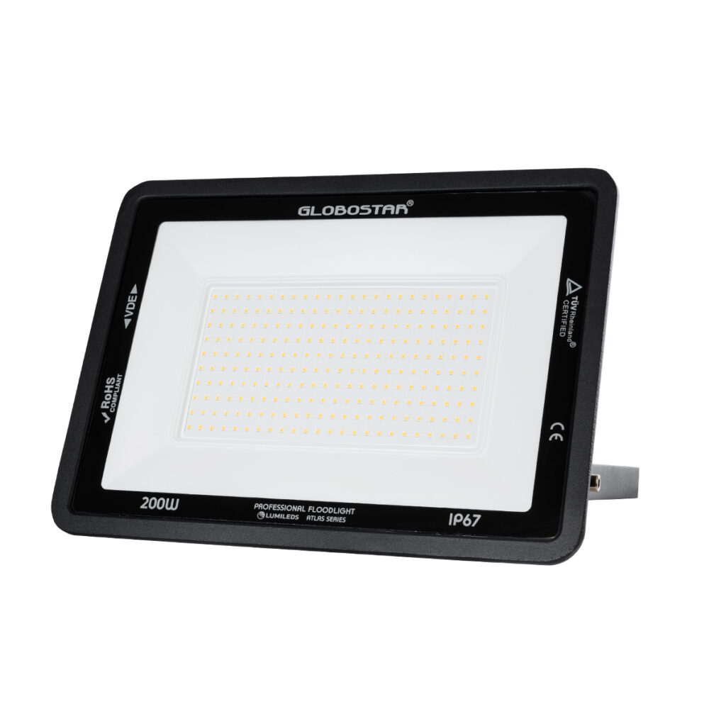 GloboStar® ATLAS 61433 Επαγγελματικός Προβολέας LED 200W 23000lm 120° AC 220-240V – Αδιάβροχος IP67 – Μ38 x Π4 x Υ28cm – Μαύρο – Θερμό Λευκό 2700K – LUMILEDS Chips – TÜV Rheinland Certified – 5 Years Warranty