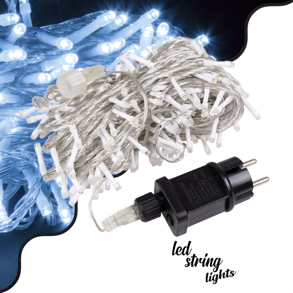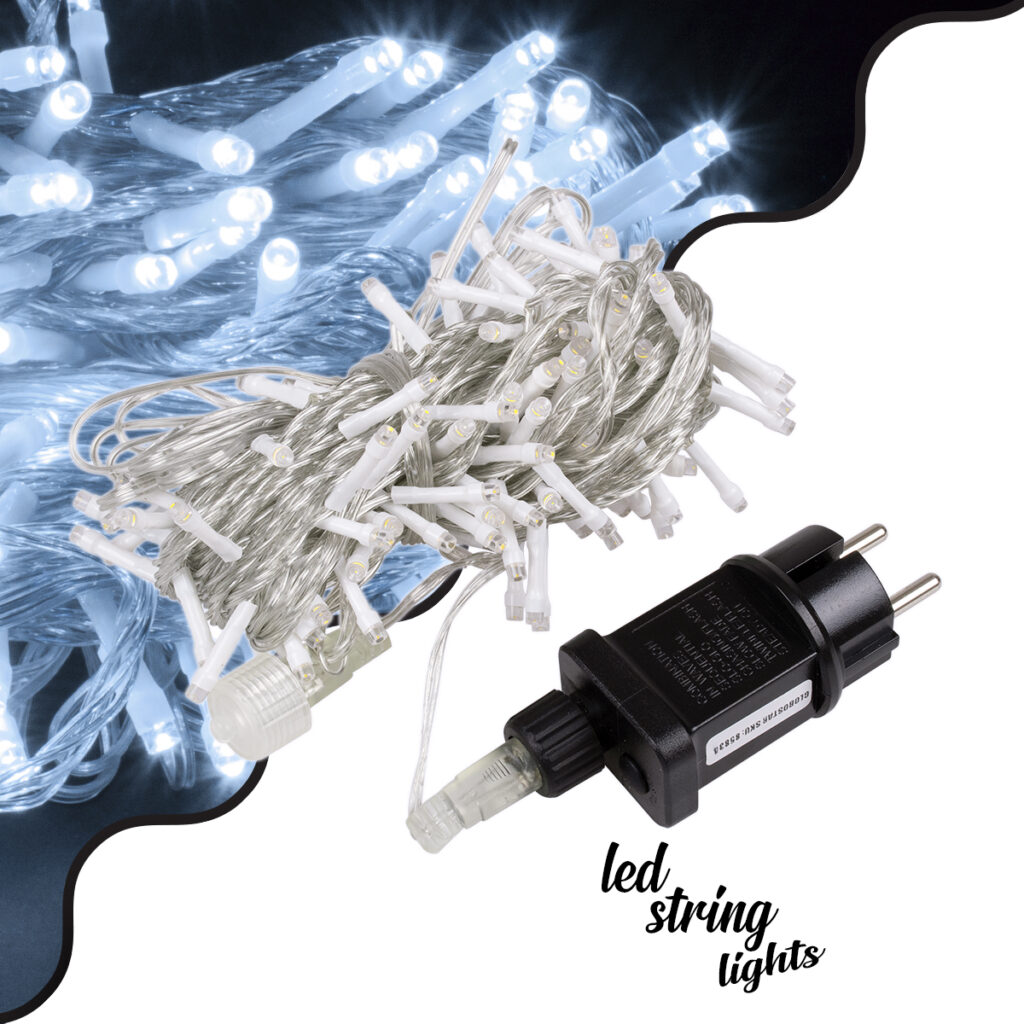 85834 Διακοσμητική Γιρλάντα 13 Μέτρα με Controller 8 Προγραμμάτων Εναλλαγών Φωτισμού – Επεκτεινόμενη 100 LED 3.6W AC 230V με Διάφανο Καλώδιο & Πρίζα Schuko Αδιάβροχη IP44 Ψυχρό Λευκό 6000K Μ13m