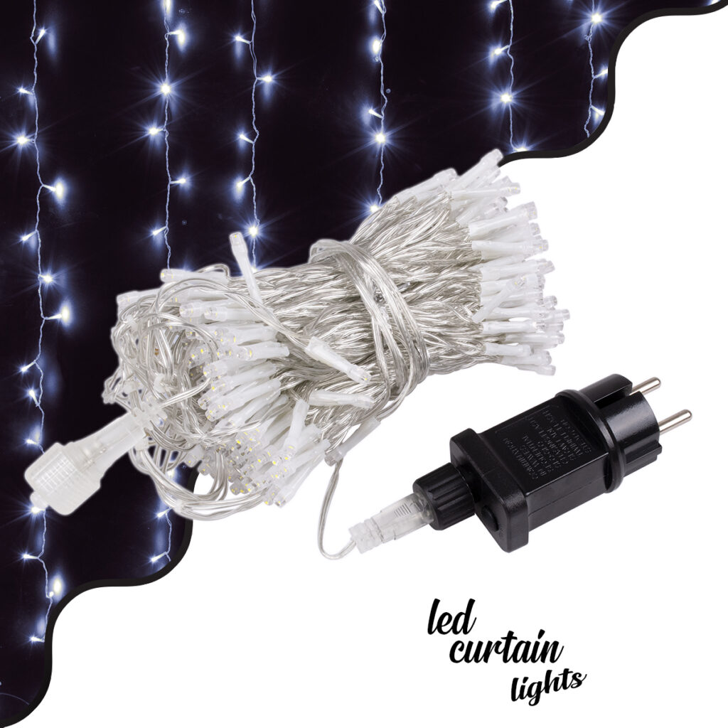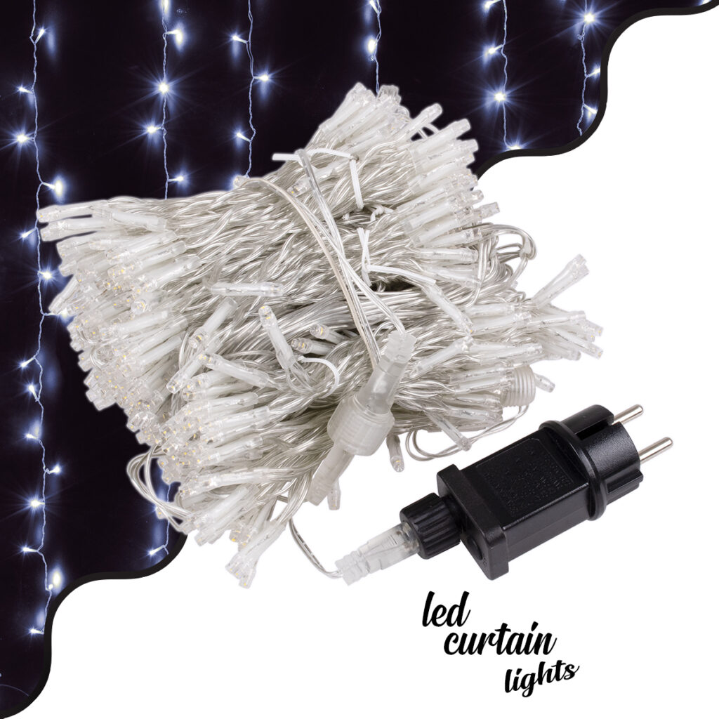 85831 Διακοσμητική Κουρτίνα 6 x 3 Μέτρα με Controller 8 Προγραμμάτων Εναλλαγών Φωτισμού – Επεκτεινόμενη 600 LED 6W AC 230V με Διάφανο Καλώδιο & Πρίζα Schuko Αδιάβροχη IP44 Ψυχρό Λευκό 6000K Μ6 x Υ3m