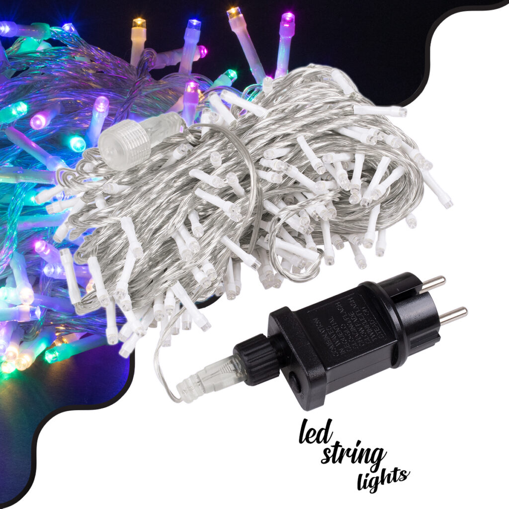 85838 Διακοσμητική Γιρλάντα 23 Μέτρα με Controller 8 Προγραμμάτων Εναλλαγών Φωτισμού – Επεκτεινόμενη 200 LED 3.6W AC 230V με Διάφανο Καλώδιο & Πρίζα Schuko Αδιάβροχη IP44 RGB Μ23m