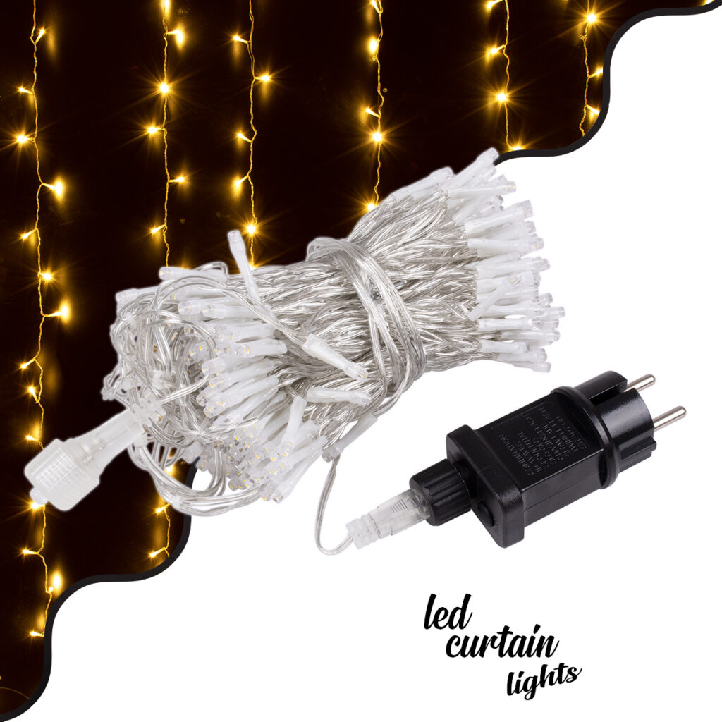 85826 Διακοσμητική Κουρτίνα 3 x 3 Μέτρα με Controller 8 Προγραμμάτων Εναλλαγών Φωτισμού – Επεκτεινόμενη 300 LED 3.6W AC 230V με Διάφανο Καλώδιο & Πρίζα Schuko Αδιάβροχη IP44 Θερμό Λευκό 2700K Μ3 x Υ3m