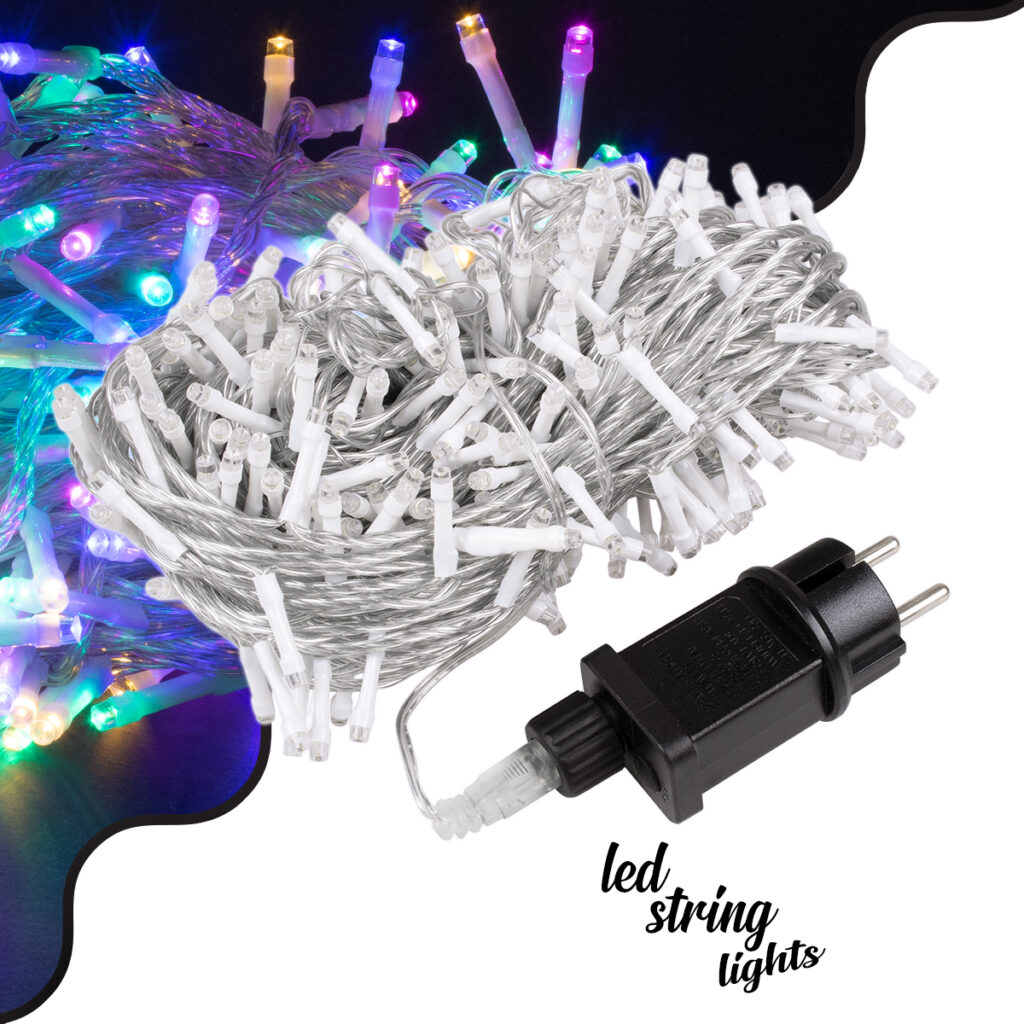 85841 Διακοσμητική Γιρλάντα 33 Μέτρα με Controller 8 Προγραμμάτων Εναλλαγών Φωτισμού – Επεκτεινόμενη 300 LED 3.6W AC 230V με Διάφανο Καλώδιο & Πρίζα Schuko Αδιάβροχη IP44 RGB Μ33m