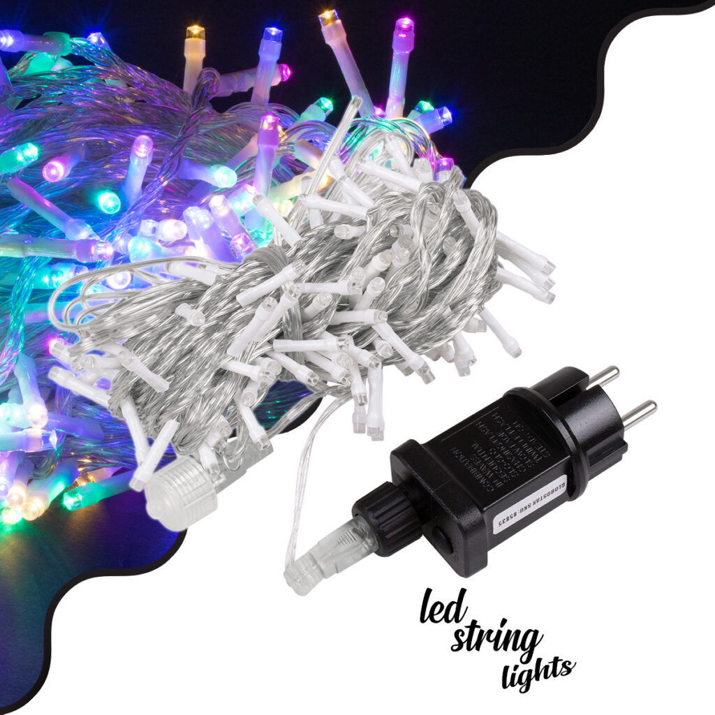 85835 Διακοσμητική Γιρλάντα 13 Μέτρα με Controller 8 Προγραμμάτων Εναλλαγών Φωτισμού – Επεκτεινόμενη 100 LED 3.6W AC 230V με Διάφανο Καλώδιο & Πρίζα Schuko Αδιάβροχη IP44 RGB Μ13m