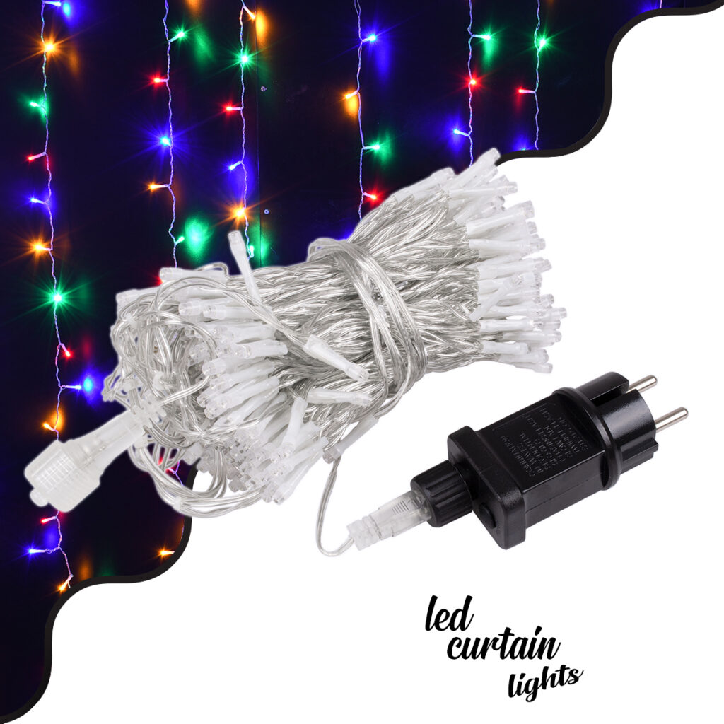 85832 Διακοσμητική Κουρτίνα 6 x 3 Μέτρα με Controller 8 Προγραμμάτων Φωτισμού – Επεκτεινόμενη 600 LED 6W AC 230V με Διάφανο Καλώδιο & Πρίζα Schuko Αδιάβροχη IP44 Πολύχρωμο RGB Μ6 x Υ3m