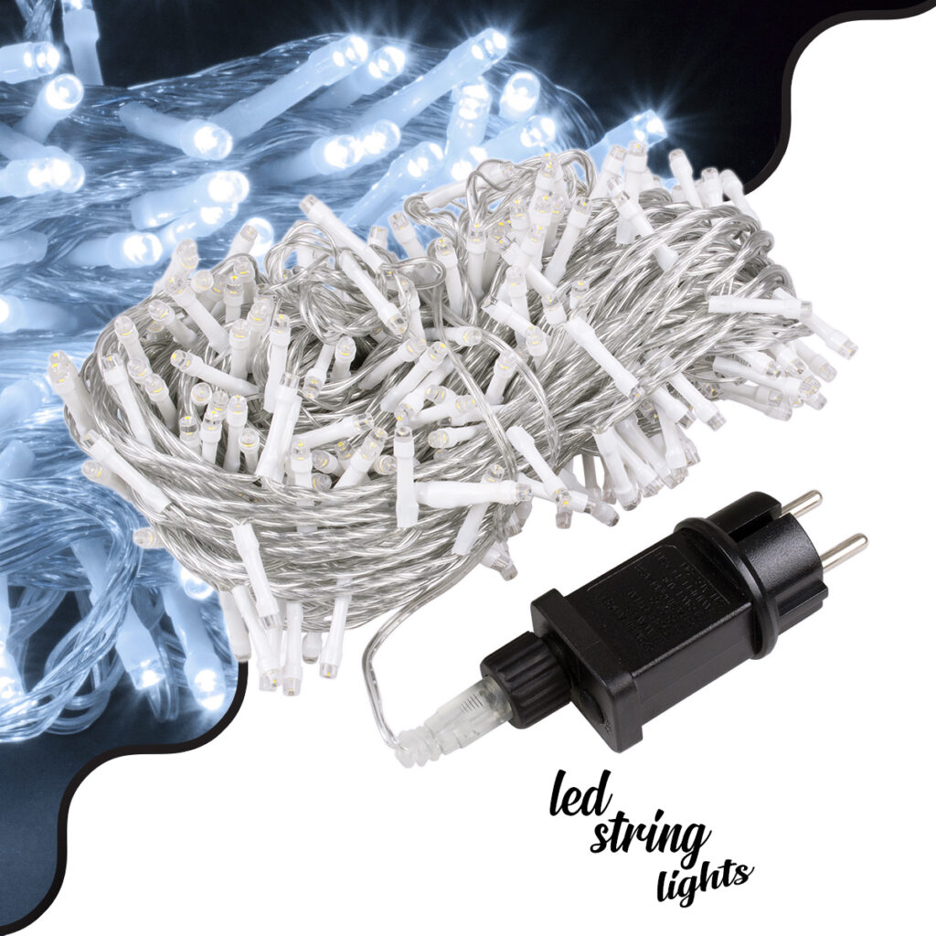 85837 Διακοσμητική Γιρλάντα 23 Μέτρα με Controller 8 Προγραμμάτων Εναλλαγών Φωτισμού – Επεκτεινόμενη 200 LED 3.6W AC 230V με Διάφανο Καλώδιο & Πρίζα Schuko Αδιάβροχη IP44 Ψυχρό Λευκό 6000K Μ23m