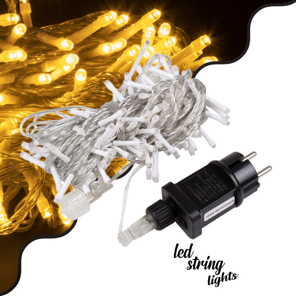 85833 Διακοσμητική Γιρλάντα 13 Μέτρα με Controller 8 Προγραμμάτων Εναλλαγών Φωτισμού – Επεκτεινόμενη 100 LED 3.6W AC 230V με Διάφανο Καλώδιο & Πρίζα Schuko Αδιάβροχη IP44 Θερμό Λευκό 3000K Μ13m