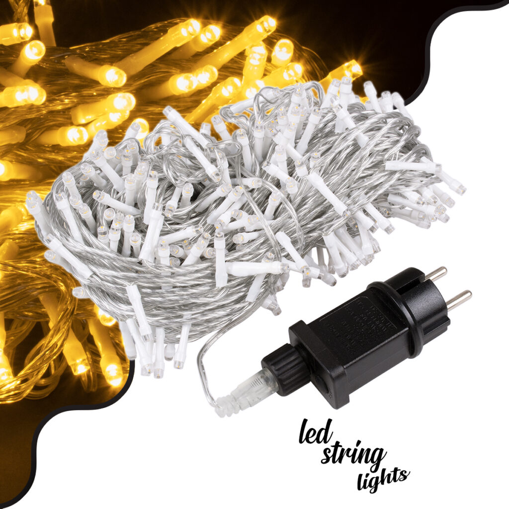 85836 Διακοσμητική Γιρλάντα 23 Μέτρα με Controller 8 Προγραμμάτων Εναλλαγών Φωτισμού – Επεκτεινόμενη 200 LED 3.6W AC 230V με Διάφανο Καλώδιο & Πρίζα Schuko Αδιάβροχη IP44 Θερμό Λευκό 3000K Μ23m