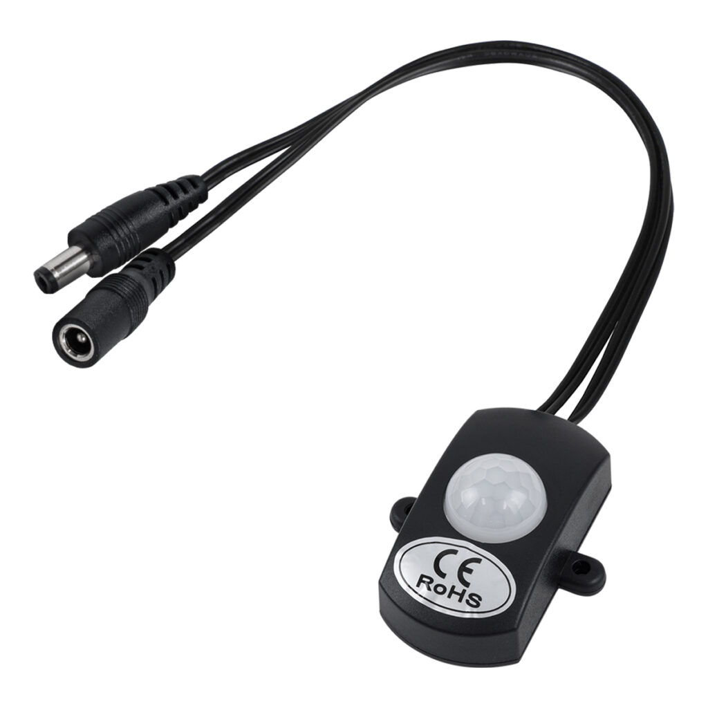 GloboStar® 70693 Mini Αισθητήρας Modular με Καλώδιο In-Out 5.5*2.1 & PIR Ανιχνευτή-Αισθητήρα Κίνησης 360° 3m Motion Sensor 30 sec Delay DC 12-24V Max 144W Μ30 x Π4 x Υ2.3cm