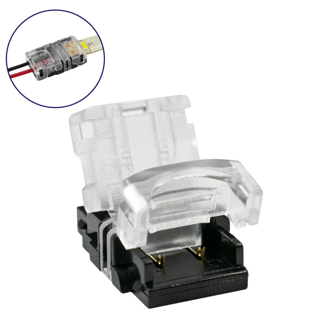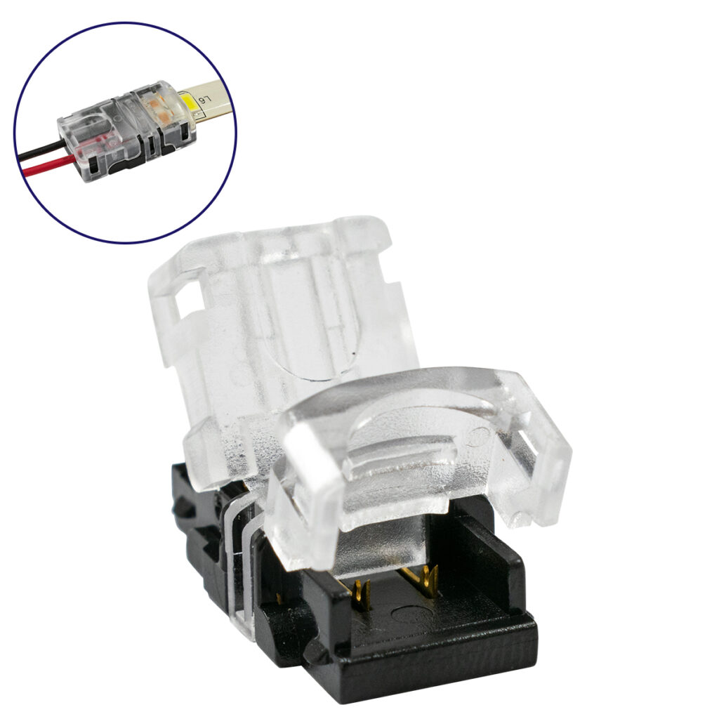 GloboStar® 70718 Ταχυσύνδεσμος Ένωσης IP20 – Strip To Cable Connector για Ένωση 1 x Μονόχρωμης Ταινίας LED Πλάτους 10mm με 1 x Καλώδιο Τροφοδοσίας