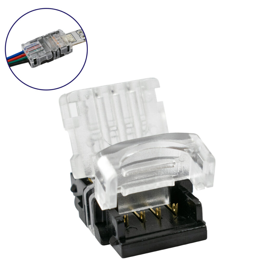GloboStar® 70722 Ταχυσύνδεσμος Ένωσης IP20 – Strip To Cable Connector για Ένωση 1 x RGB Ταινίας LED Πλάτους 10mm με 1 x Καλώδιο Τροφοδοσίας