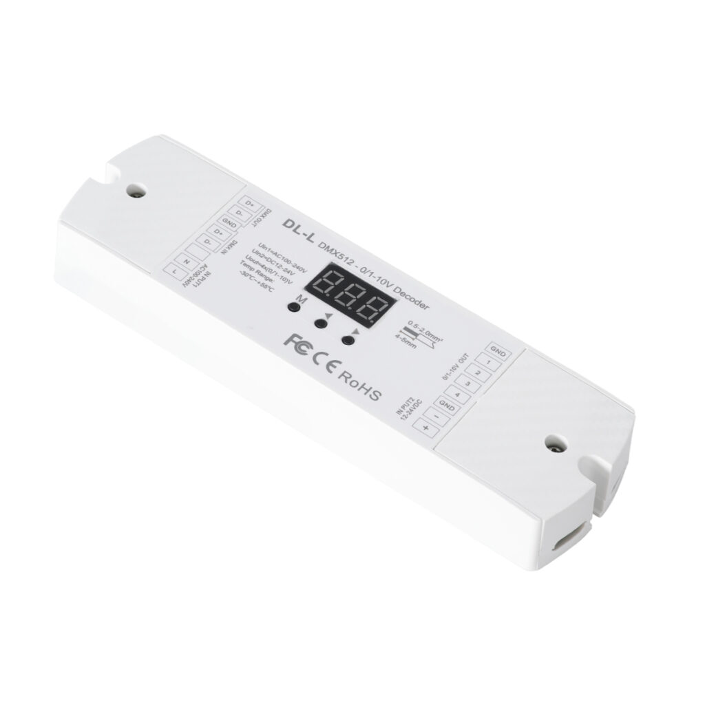 GloboStar® 73140 DL-L SKYDANCE AC DMX512 to 0/1-10V Converter / Decoder 4 Καναλιών – 2 Inputs DC 12-24V ή AC 100-240V – IP20 Μ17 x Π5 x Υ2.5cm – 5 Χρόνια Εγγύηση