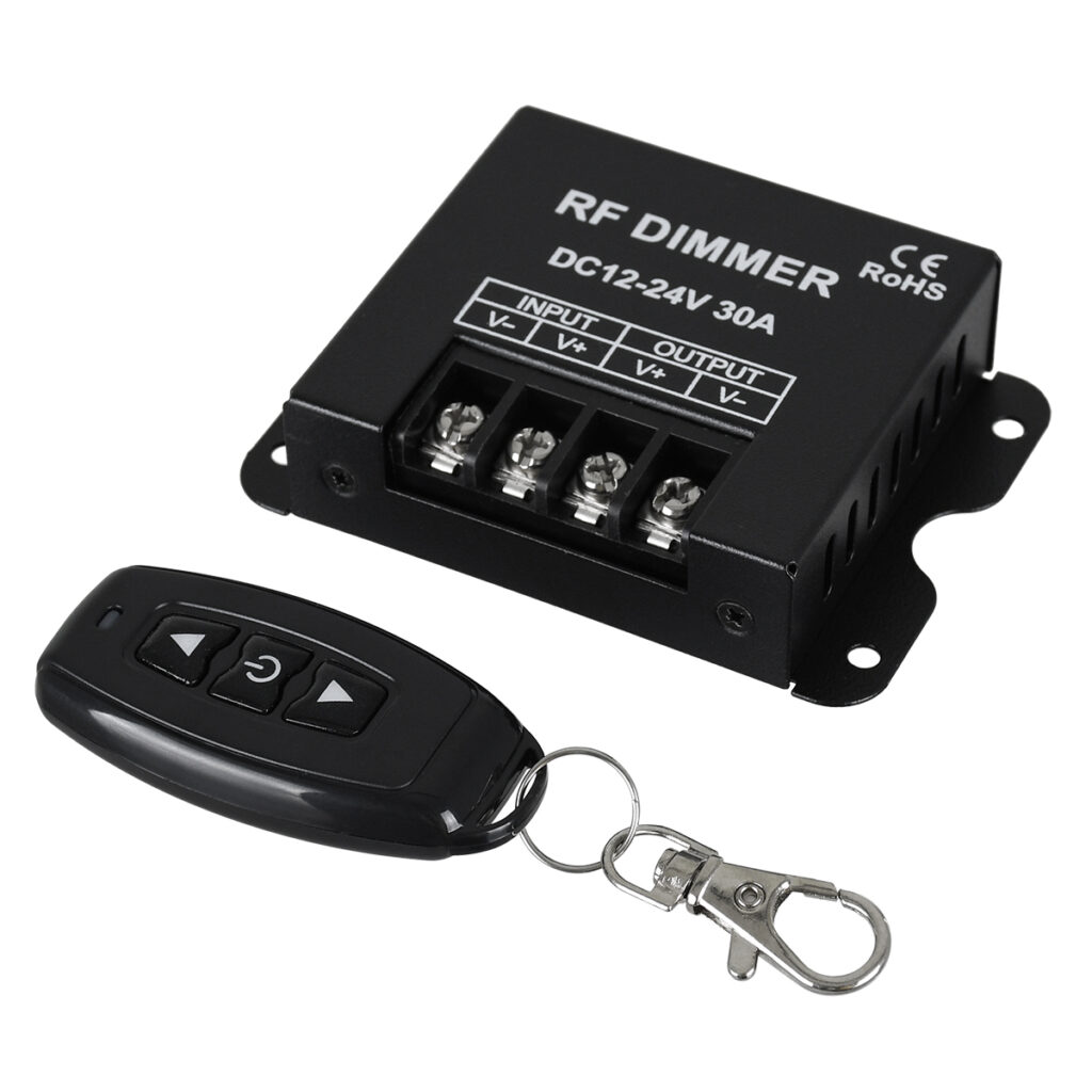 GloboStar® 73311 DC RF 2.4Ghz Controller & Dimmer 1 Κανάλι DC 12-24V 25A MAX 600W IP 20 Μ12.7 x Π4 x Υ3.2cm με Χειριστήριο RF 2.4Ghz SYNC