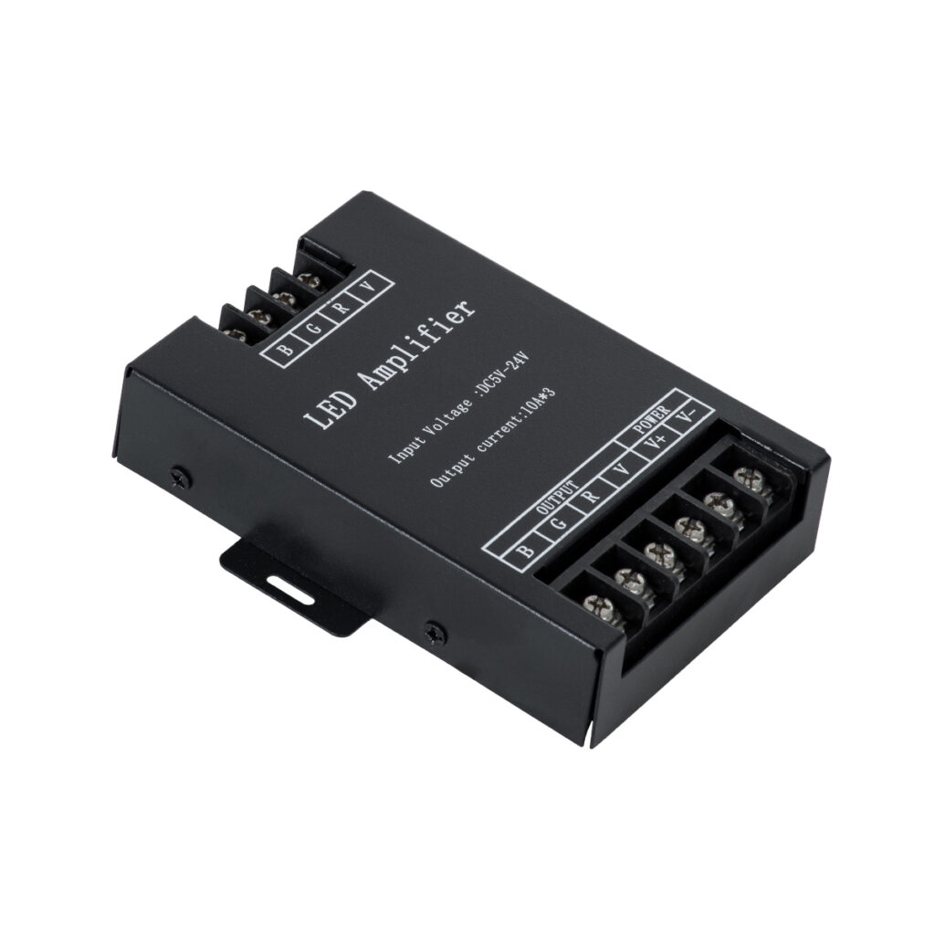 GloboStar® 73393 DC Power & Signal High Speed Amplifier Ενισχυτής Ισχύος & Σήματος Υψηλών Ταχυτήτων 3 Καναλιών DC 12-24V 3 x 10A 240W – Max 12A 720W – IP20 RGB Μ11 x Π9 x Υ2.5cm – 2 Years Warranty