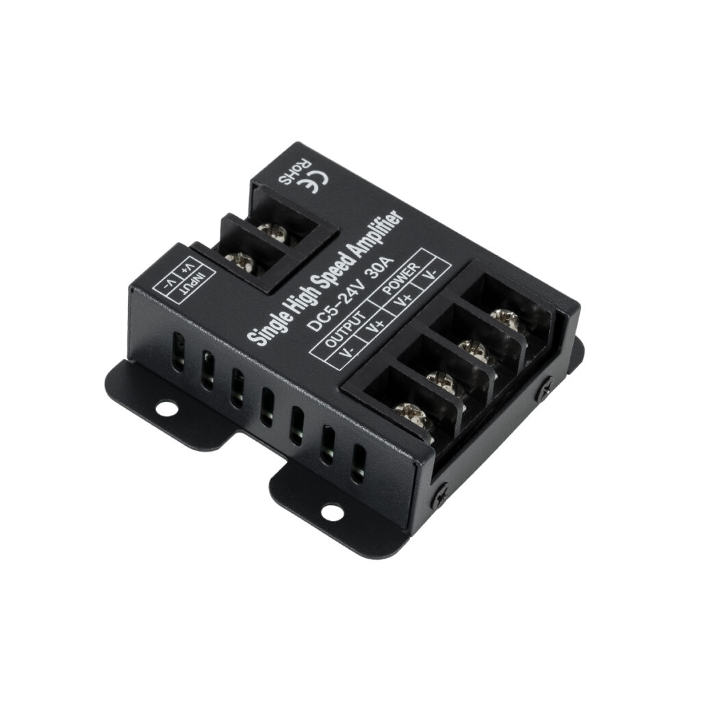GloboStar® 73396 DC Power & Signal High Speed Amplifier Ενισχυτής Ισχύος & Σήματος Υψηλών Ταχυτήτων 1 Καναλιού DC 5-24V 1 x 30A 360W – Max 30A 360W – IP20 – Single Color – Μ6.3 x Π6.7 x Υ2cm – 2 Χρόνια Εγγύηση
