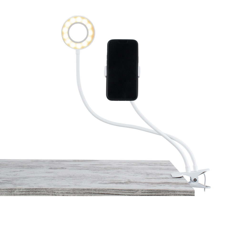 GloboStar® 75808 Professional Digital Ring Light Φ9cm LED SMD 10W 1000lm 180° DC 5V με Καλώδιο Τροφοδοσίας USB – Ενσωματωμένο Χειριστήριο Εναλλαγής Χρωμάτων & 1 Βάση Τηλεφώνου – CCT Θερμό Λευκό 3000K – Φυσικό Λευκό 4500K – Ψυχρό Λευκό 6000K Dimmable Λευκό