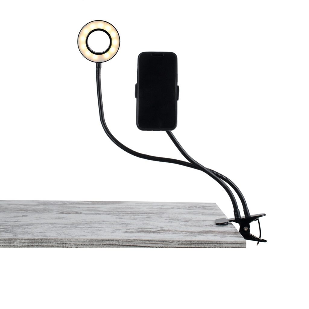 GloboStar® 75809 Professional Digital Ring Light Φ9cm LED SMD 10W 1000lm 180° DC 5V με Καλώδιο Τροφοδοσίας USB – Ενσωματωμένο Χειριστήριο Εναλλαγής Χρωμάτων & 1 Βάση Τηλεφώνου – CCT Θερμό Λευκό 3000K – Φυσικό Λευκό 4500K – Ψυχρό Λευκό 6000K Dimmable Μαύρο