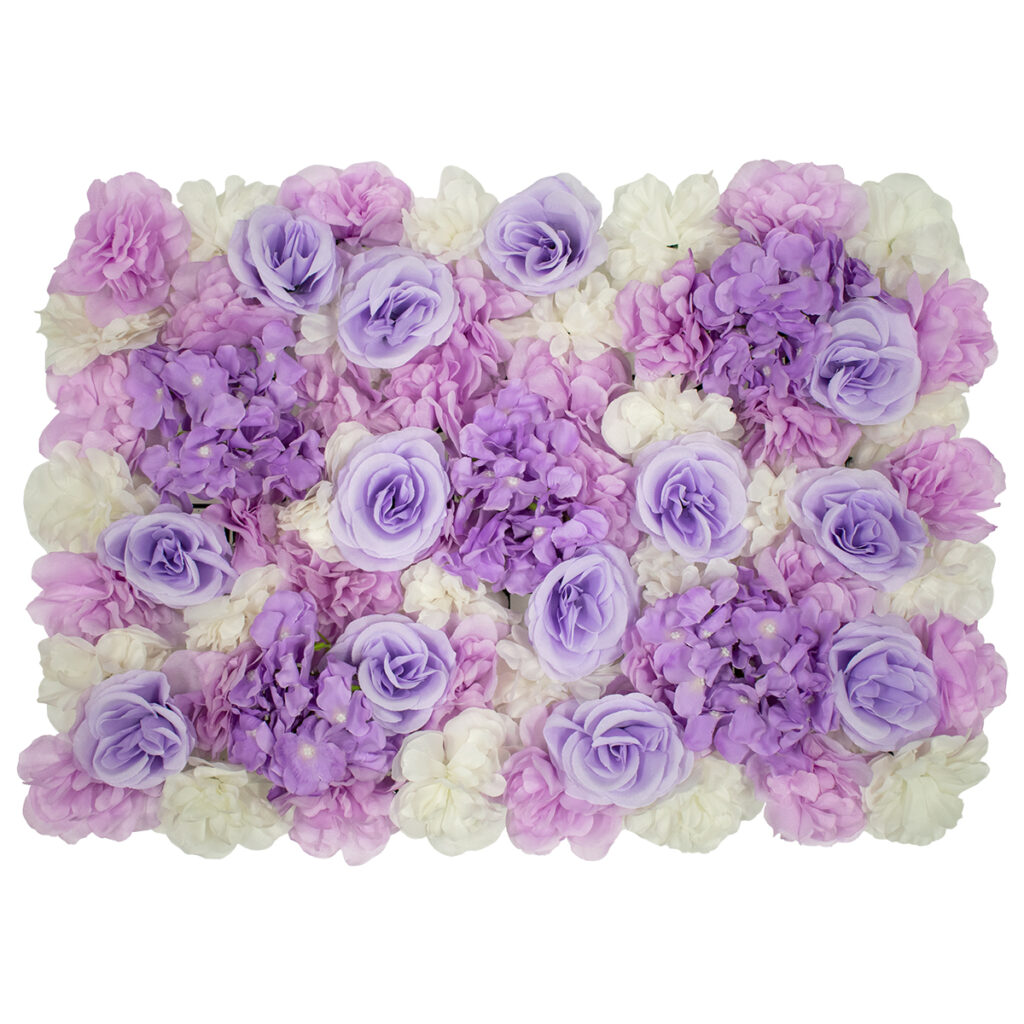 GloboStar® 78305 Συνθετικό Πάνελ Λουλουδιών – Κάθετος Κήπος Τριαντάφυλλο – Ορτανσία – Βιολέτα Μ60 x Υ40 x Π7cm