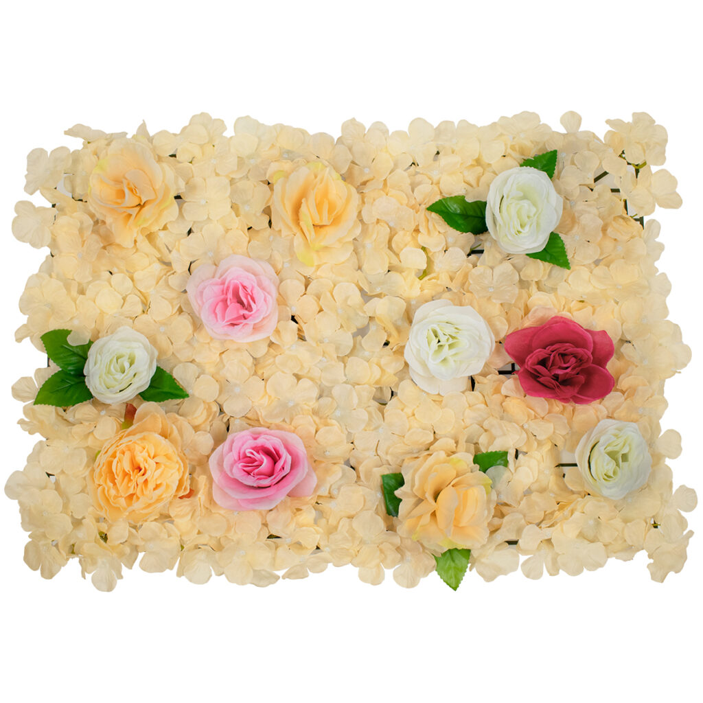 GloboStar® 78312 Συνθετικό Πάνελ Λουλουδιών – Κάθετος Κήπος Τριαντάφυλλο – Ορτανσία Μ60 x Υ40 x Π7cm