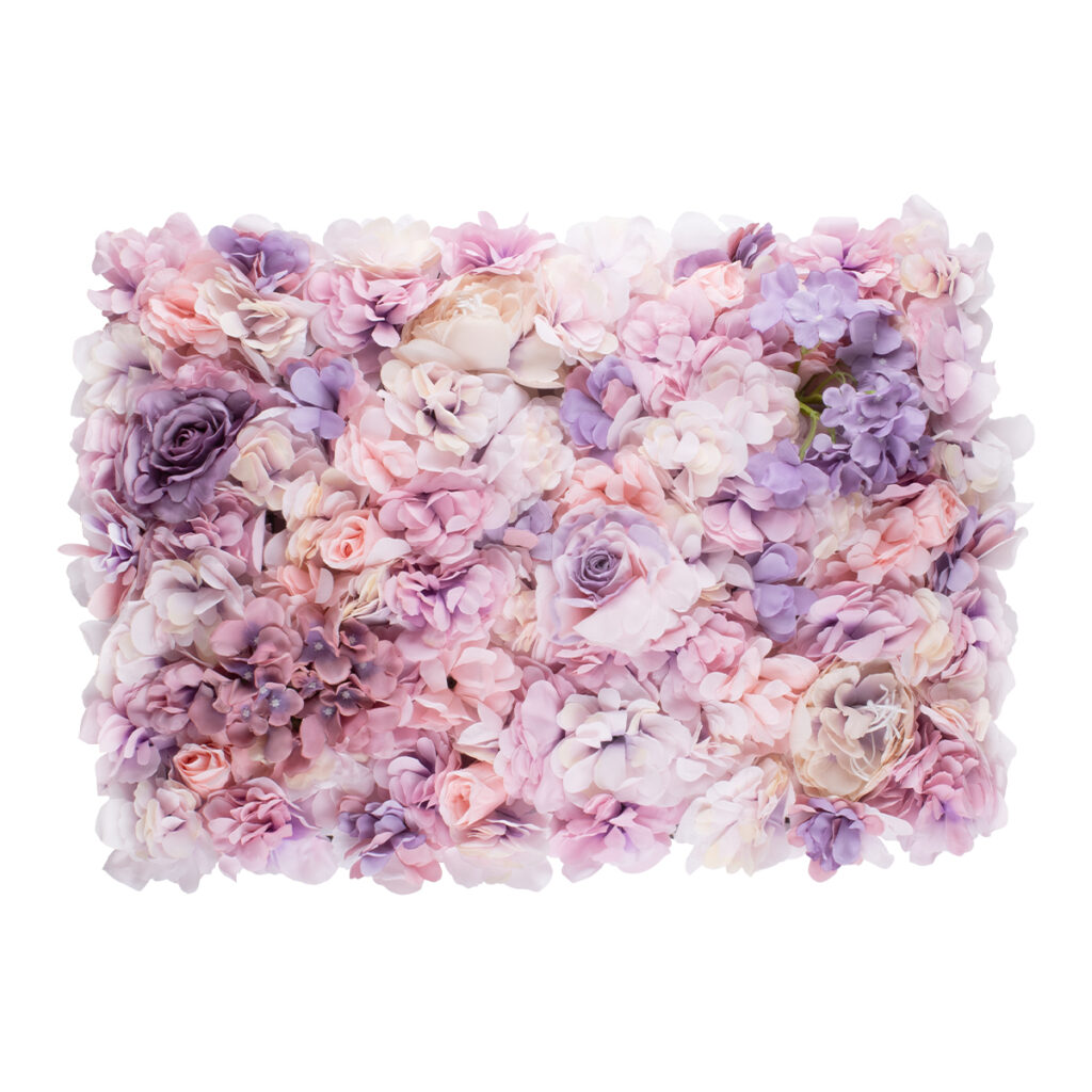 GloboStar® 78331 Artificial – Συνθετικό Τεχνητό Διακοσμητικό Πάνελ Λουλουδιών – Κάθετος Κήπος Τριαντάφυλλο – Ορτανσία – Βιολέτα – Ροζ – Λιλά Μ60 x Υ40 x Π7cm
