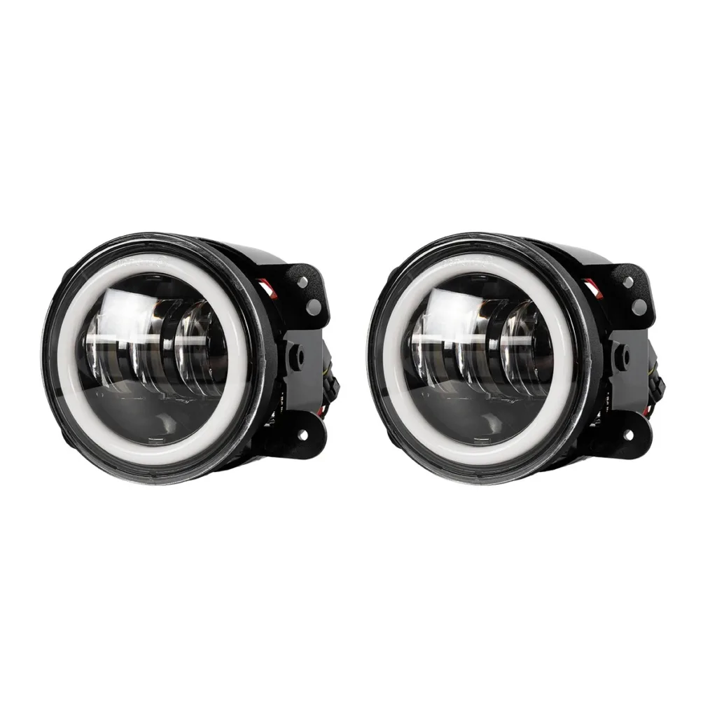 GloboStar® 85418 Σετ 2 x Προβολείς Ομίχλης JEEP WRANGLER – MERCEDES BENZ G CLASS – LAND ROVER DEFENDER – HAMMER H1-H2 – 4” Ιντσών με Ring Light DRL LED CREE CXB COB 100W 7500lm DC 12V Αδιάβροχοι IP66 Ψυχρό Λευκό 6000K