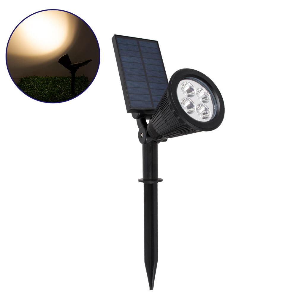 GloboStar® 85710 Μαύρο Προβολάκι Σποτ Κήπου Πλαστικό Καρφωτό LED HIGH POWER 8W 800lm με Ενσωματωμένη Μπαταρία 2200mAh – Φωτοβολταϊκό Πάνελ με Αισθητήρα Ημέρας-Νύχτας Αδιάβροχo IP67 Ψυχρό Λευκό 6000K