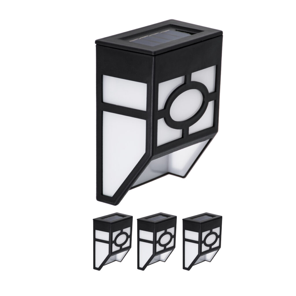 GloboStar® 85708 ΣΕΤ 4 Τεμαχίων Αυτόνομα Ηλιακά Φωτιστικά Τοίχου Μαύρα-Λευκά LED SMD 1W 100lm με Ενσωματωμένη Μπαταρία 600mAh – Φωτοβολταϊκό Πάνελ με Αισθητήρα Ημέρας-Νύχτας Αδιάβροχα IP65 Ψυχρό Λευκό 6000K