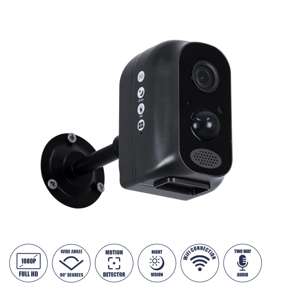 GloboStar® 86026 Επαναφορτιζόμενη Επιτραπέζια/Τοίχου IP Camera 1080P WiFi 90° Μοιρών – 6200mAh – Νυχτερινή Όραση με LED IR – Διπλή Κατέυθυνση Ομιλίας – Ανιχνευτή Κίνησης – Νυχτερινή Λήψη – Θέση SD Κάρτας Max 128GB – 25 Μέρες Stand By