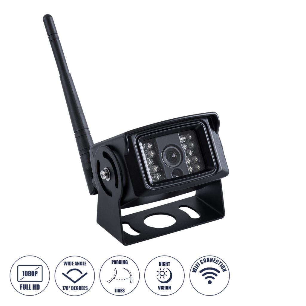 GloboStar® 86071 WiFi Έγχρωμη Κάμερα 1800P HD Οπισθοπορείας Αυτοκινήτου-Φορτηγού DC 12-24V 120° με Parking Lines Αδιάβροχη IP68 – Μαύρο