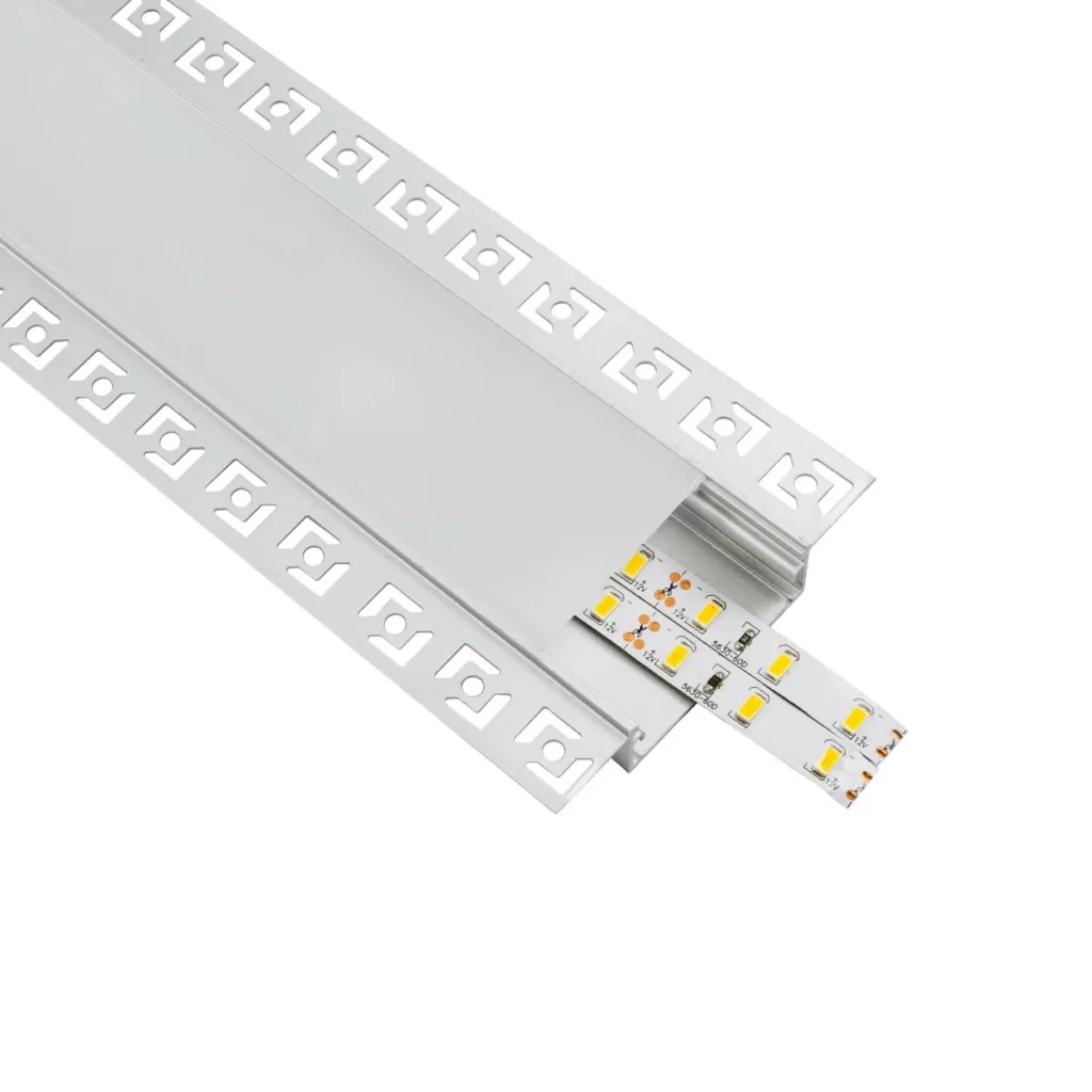 GLOBOSTAR® ALP-PLASTERIN GYPSO 70861-1M Χωνευτό Προφίλ Αλουμινίου Ειδικό για Γυψοσανίδα με Λευκό Γαλακτερό Πατητό Κάλυμμα για Ταινίες LED IP20 – Ασημί – Μ100 x Π7.8 x Υ1.4cm