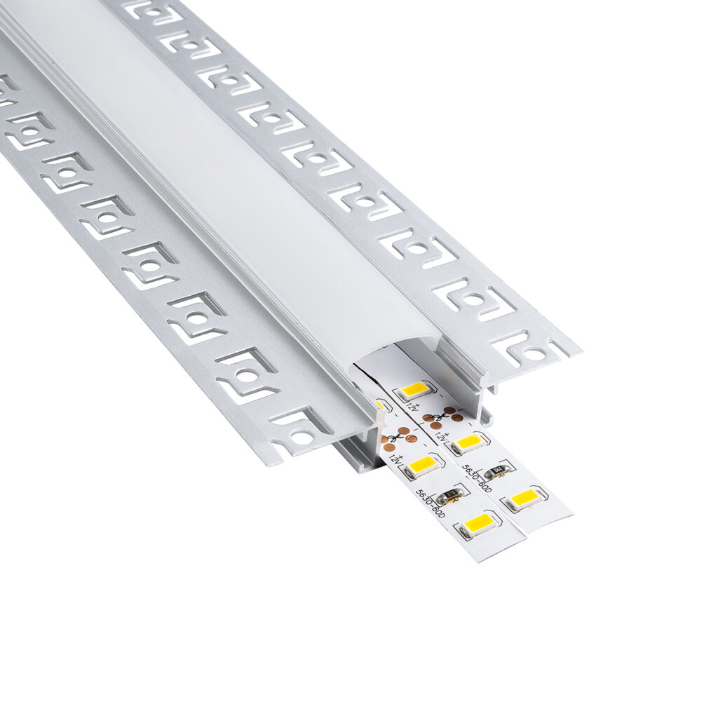 GloboStar® PLASTERBOARD-PROFILE 70819-1M Προφίλ Αλουμινίου – Βάση & Ψύκτρα Ταινίας LED με Λευκό Γαλακτερό Κάλυμμα – Χωνευτή Χρήση σε Γυψοσανίδα – Trimless – Πατητό Κάλυμμα – Ασημί – 1 Μέτρο – Μ100 x Π6.7 x Υ1.4cm