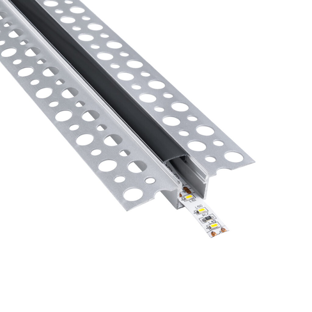 GloboStar® PLASTERBOARD-PROFILE 70839-1M Προφίλ Αλουμινίου – Βάση & Ψύκτρα Ταινίας LED με Μαύρο Φιμέ Κάλυμμα – Χωνευτή Χρήση σε Γυψοσανίδα – Trimless – Πατητό Κάλυμμα – Ασημί – 1 Μέτρο – Μ100 x Π5.6 x Υ1.5cm