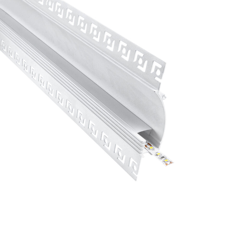 GloboStar® PLASTERBOARD-PROFILE 70840-3M Προφίλ Αλουμινίου – Βάση & Ψύκτρα Ταινίας LED με Λευκό Γαλακτερό Κάλυμμα – Χωνευτή Χρήση σε Γυψοσανίδα για Δημιουργία Κρυφού Φωτισμού – Trimless – Πατητό Κάλυμμα – Λευκό – 3 Μέτρα – Πακέτο 5 Τεμαχίων – Μ300 x Π9.7 x Υ2cm