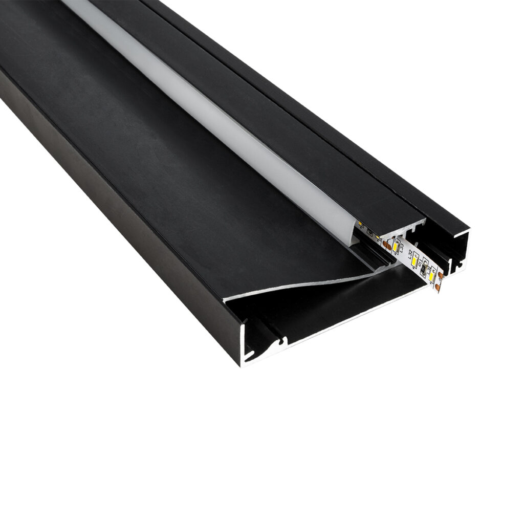 GloboStar® SKIRTINGBOARD-PROFILE 70852-3M Προφίλ Αλουμινίου – Βάση & Ψύκτρα Ταινίας LED με Λευκό Γαλακτερό Κάλυμμα – Επιφανειακή Χρήση για Περβάζι – Πατητό Κάλυμμα – Μαύρο – 3 Μέτρα – Μ300 x Π1.6 x Υ8cm