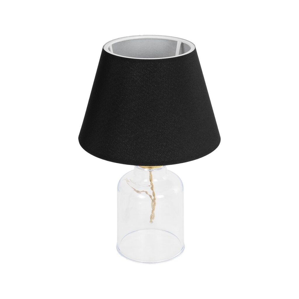 GloboStar® TRANS 204-0054 Μοντέρνο Eπιτραπέζιο Φωτιστικό Μονόφωτο 1 x E27 IP20 Διάφανο Πλαστικό με Μαύρο Ύφασμα – Μ22 x Π22 x Υ14cm
