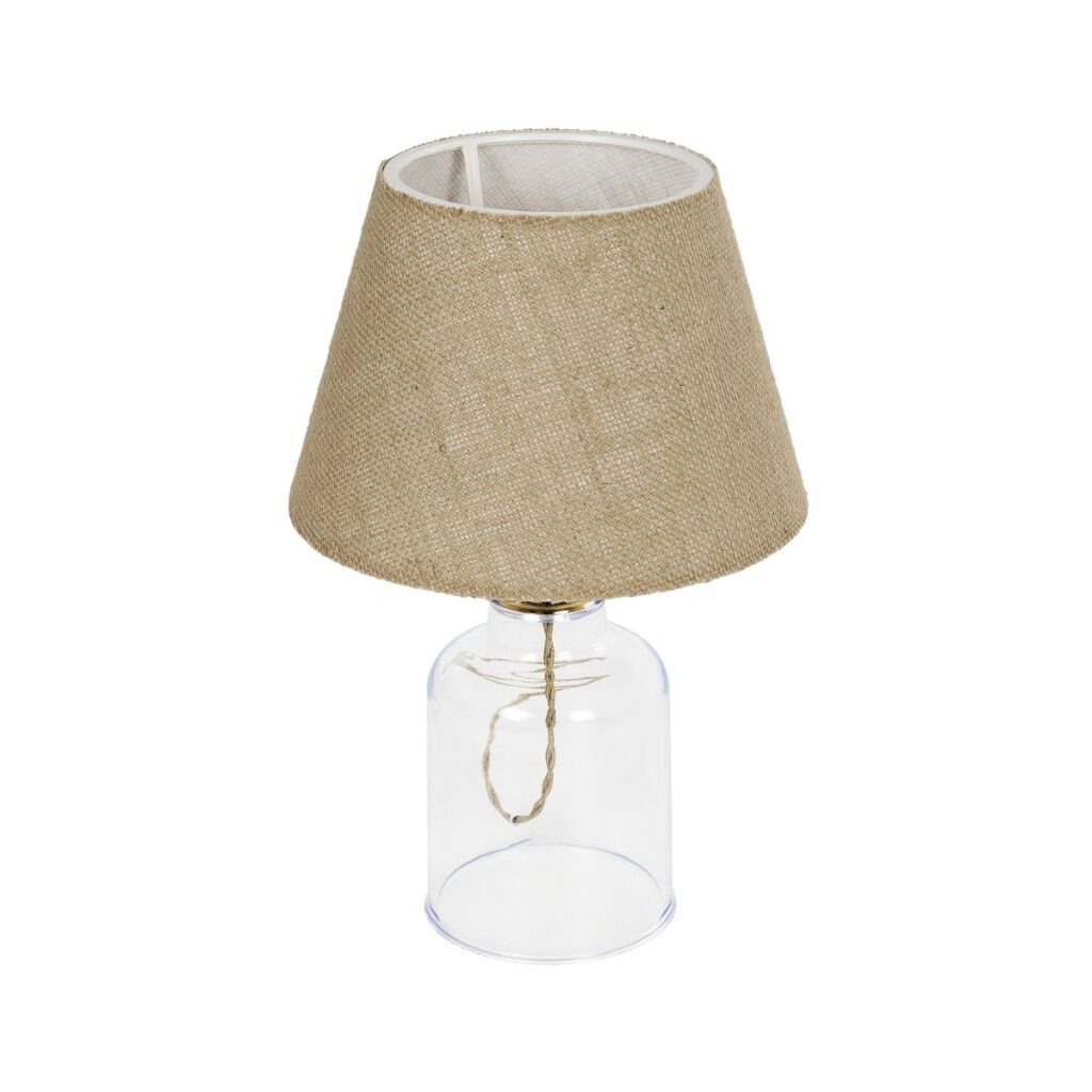 GloboStar® TRANS 204-0055 Μοντέρνο Eπιτραπέζιο Φωτιστικό Μονόφωτο 1 x E27 IP20 Διάφανο Πλαστικό με Μπεζ Ύφασμα – Μ22 x Π22 x Υ14cm