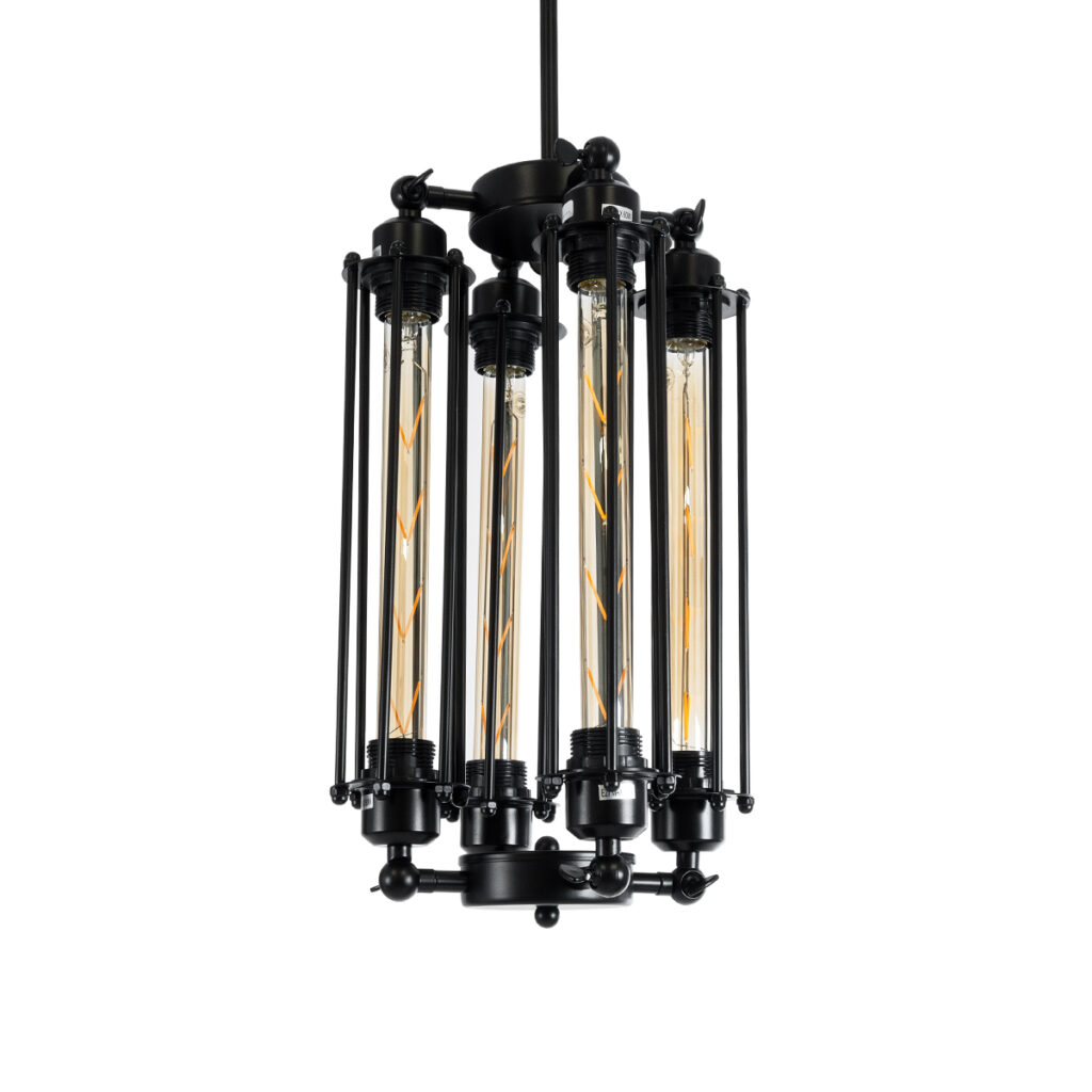 GloboStar® TUBING 01013 Vintage Κρεμαστό Φωτιστικό Πλέγμα Πολύφωτο 4 x E27 IP20 Μαύρο Μέταλλο – Μ27 x Π27 x Y47cm