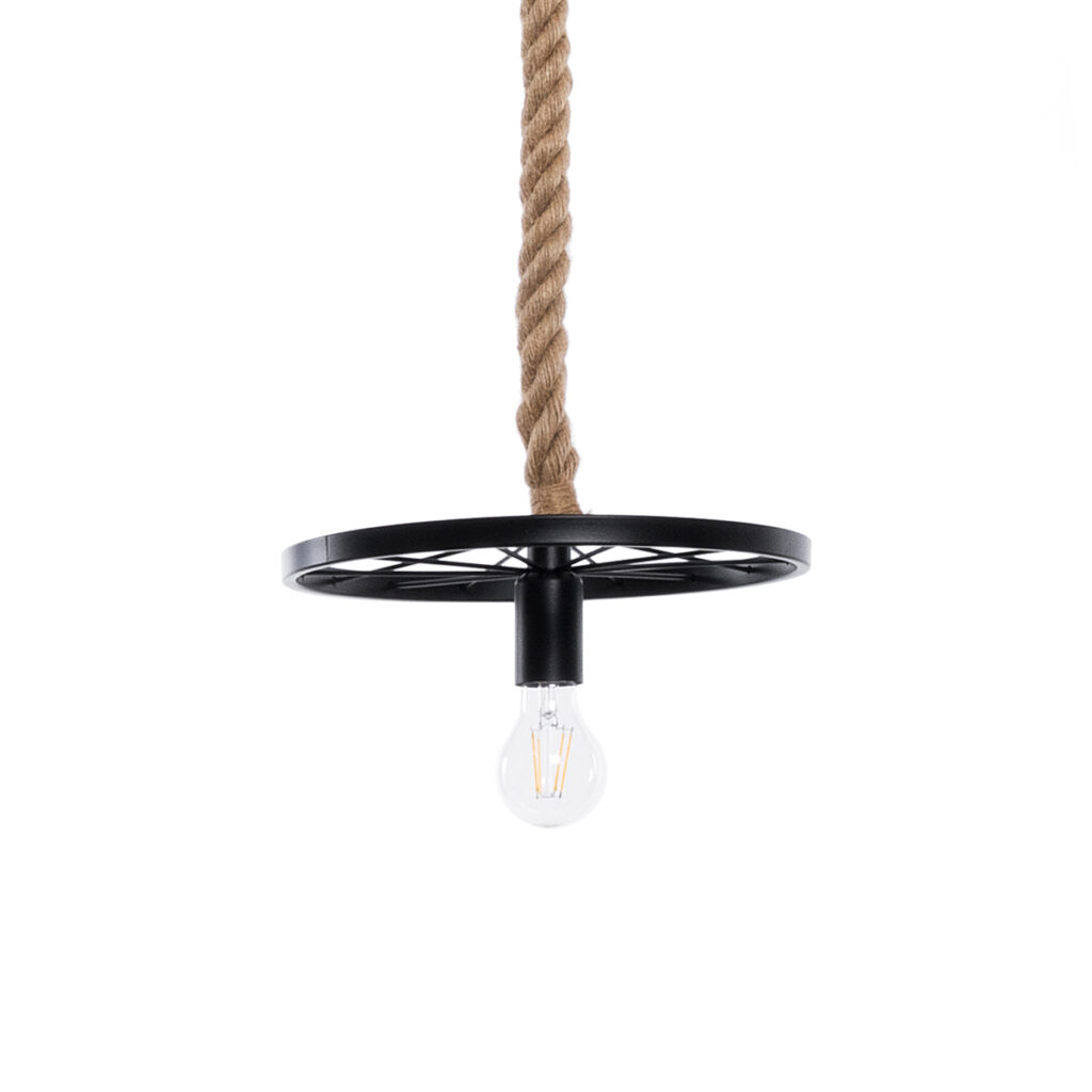 GloboStar® VELO 01185 Vintage Κρεμαστό Φωτιστικό Ανάρτηση Μονόφωτο 1 x E27 IP20 Μαύρο Μέταλλο με Μπεζ Σχοινί – Μ30 x Π30 x Υ12cm