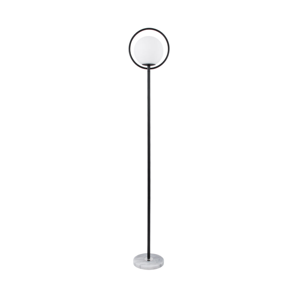 GloboStar® VERSAILLES 01540 Μοντέρνο Επιδαπέδιο Φωτιστικό Μονόφωτο 1 x E27 IP20 Μαύρο Αλουμίνιο, Λευκό Γυαλί με Γκρι Μάρμαρο – Μ25 x Π25 x Υ150cm