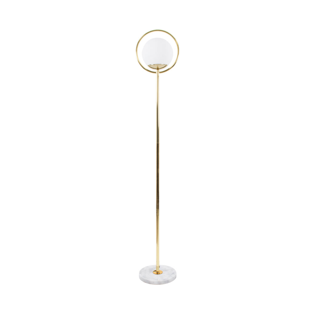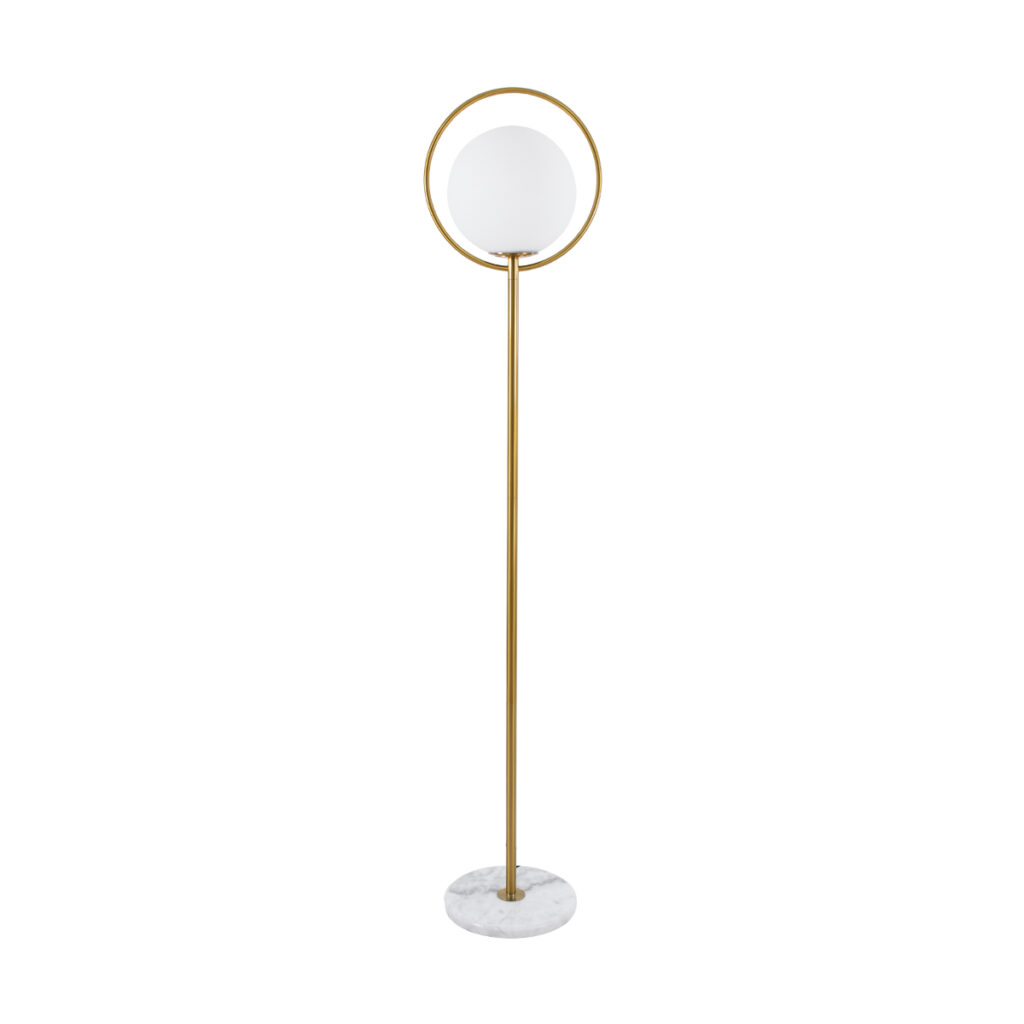 GloboStar® VERSAILLES 01543 Μοντέρνο Επιδαπέδιο Φωτιστικό Μονόφωτο 1 x E27 IP20 Χρυσό Αλουμίνιο , Λευκό Γυαλί με Γκρι Μάρμαρο – Μ35 x Π35 x Υ170cm