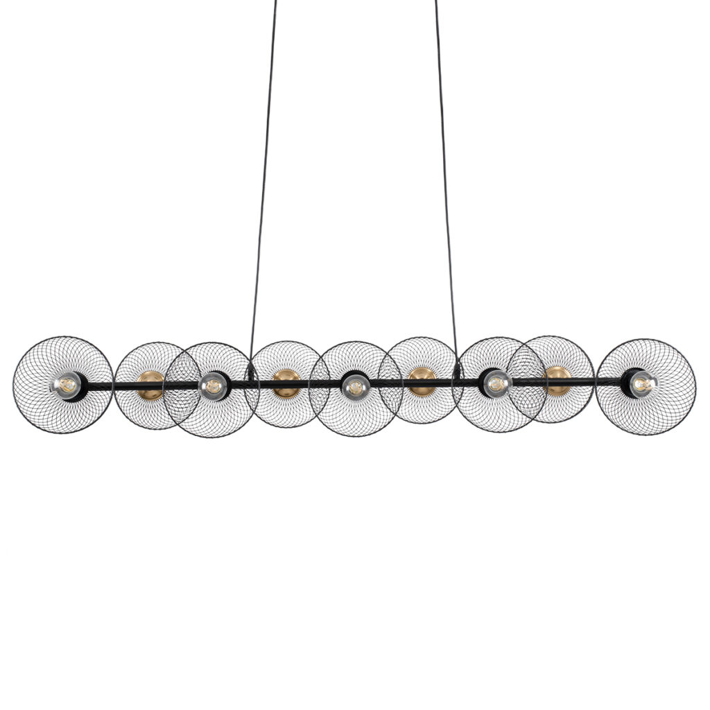 GloboStar® VERONA 00588 Μοντέρνο Κρεμαστό Φωτιστικό Ράγα Πολύφωτο 9 x E27 Μαύρο & Χρυσό Μέταλλο – Μ140 x Π28 x Υ20cm
